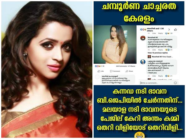 കന്നട നടി ഭാവന കഴിഞ്ഞ ദിവസം ബിജെപിയില് ചേര്ന്നിരുന്നു. ഇത് മലയാളിയായ നടി ഭാവനയാണ് എന്ന പേരില് സോഷ്യല് മീഡിയയില് പ്രചാരണം നടന്നിരുന്നു. അതിന്റെ ചുവട് പിടിച്ചാണ് ഭാവനയുടെ പേരിലുള്ള ഫേസ്ബുക്ക് പേജുകളില് സംഘികള് വ്യാജ ആക്രമണം നടത്തുന്നത്.