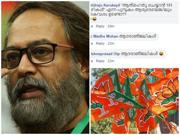 'ഉറപ്പിച്ചോ നിന്റെയൊക്കെ നെഞ്ചത്ത് തന്നെ പത്തനംതിട്ട യിലും തിരുവനന്തപുരത്തും ബിജെപി ജയിച്ചിരിക്കും നിന്റെ ചൈനീസ് കമ്മി പാർട്ടിയുടെ ദേശീയ അംഗീകാരം പോകുകയും ചെയ്യും' എന്ന് തുടങ്ങിയുള്ള രൂക്ഷമായ പ്രതികരണങ്ങളും അസഭ്യ വര്ഷങ്ങളുമാണ് അദ്ദേഹത്തിന്റെ പോസ്റ്റുകള്ക്ക് താഴെ നടക്കുന്നത്.