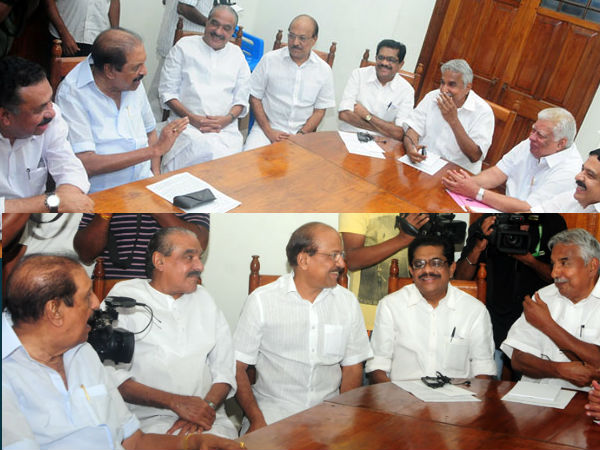യുഡിഎഫ് യോഗത്തിനിടെ ചിരിയ്ക്കുന്ന നേതാക്കള്