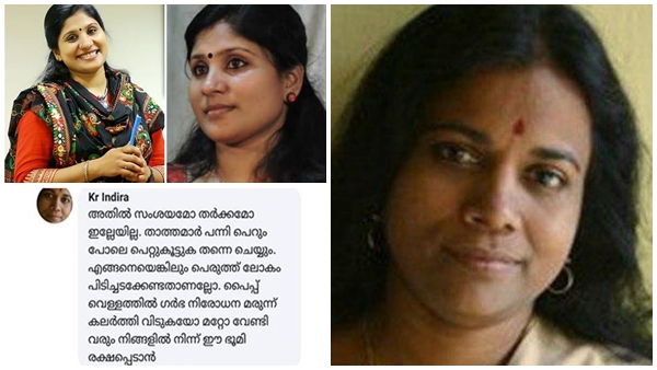 ഇന്ദിരയുടെ പോസ്റ്റില് പ്രതിഷേധിച്ചുകൊണ്ട് മറ്റൊരാള് എഴുതിയ ഫേസ്ബുക്ക് കുറിപ്പിന് താഴെയായിരുന്നു മറുപടി.