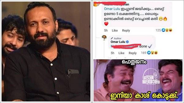 ഭാഗ്യത്തിന് ആ ചെങ്ങായി 5 ലക്ഷത്തിനു പകരം 5 കോടി പറഞ്ഞിരുന്നെങ്കില് നിങ്ങള് പെട്ടുപോയിരുന്നു ഒമര് ഭായ്. അല്ല മന്സാ നിങ്ങളിങ്ങനെ റിയാക്ട് ചെയ്യുമെന്നറിഞ്ഞെങ്കില് ഞാന് വെക്കുമായിരുന്നില്ലേ ഇതിലും നല്ലൊരു ബെറ്റ്- ഇങ്ങനെയുള്ള രസകരമായ കമന്റുകളാണ് സോഷ്യല് മീഡിയയില് പ്രത്യക്ഷപ്പെടുന്നത്.