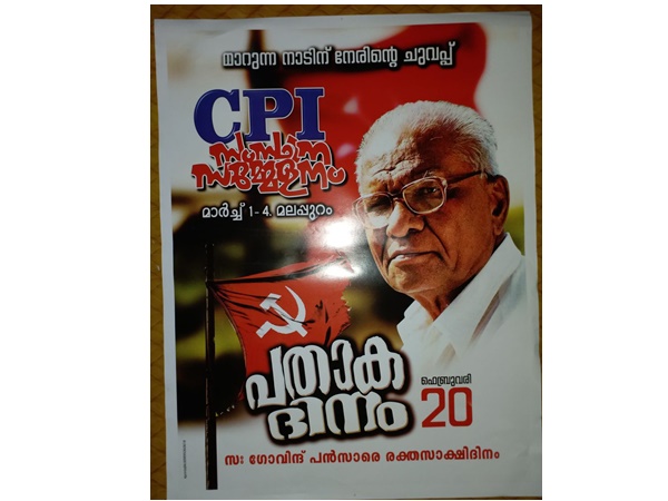 ഗോവിന്ദ് പന്സാരെ രക്തസാക്ഷിദിനമായ ഇന്ന് സിപിഐ സംസ്ഥാന സമ്മേളന പതാകദിനം നടത്തും
