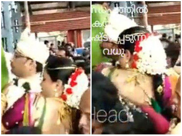 പുറകില് നിന്ന് ആളുകള് തള്ളി തുടങ്ങിയതോടെ ഒരുങ്ങിക്കെട്ടി വന്ന വധുവിന്റെ വസ്ത്രവും ആഭരണങ്ങളെല്ലാം ഒരുവഴിക്കായി. ഇതിനിടെ പിതാവിനെ വിളിച്ച് വധു കരയുന്നുമുണ്ട് വീഡിയോയില്.
