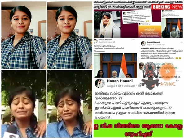 ഹനാന് ഹനാനി എന്ന പേജില് നിന്ന് 'നരേന്ദ്ര മോദിക്ക് എന്ത് പണിയാണ് കൊടുക്കുക എന്ന തരത്തിലായിരുന്നു പോസ്റ്റ് പ്രത്യക്ഷപ്പെട്ടത്. ഇതോടെ ഈ വിഷ വിത്തിനെയാണോ കേരളം സ്നേഹിച്ചതെന്ന അടിക്കുറിപ്പോടെ ഹനാനെതിരായ പോസ്റ്റുകള് പ്രത്യേക്ഷപ്പെട്ട് തുടങ്ങി.