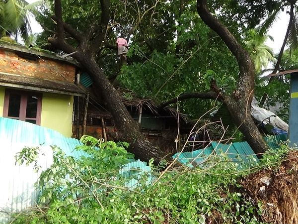 കനത്ത മഴയില് ബിയ്യം പുളിക്കകടവ് സ്വദേശി വടക്കേത്താക്കല് ഗംഗാധരന്റെ വീടിന് മുകളിലേക്ക് വീണആല് മരം
