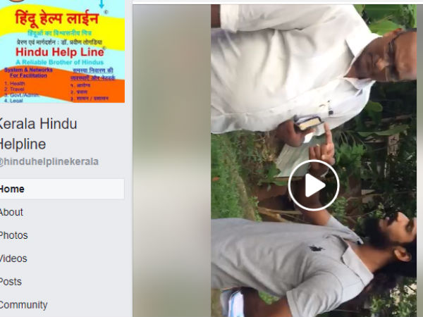ഹിന്ദു ഹെൽപ് ലൈൻ ഫേസ്ബുക്ക് പോസ്റ്റ്