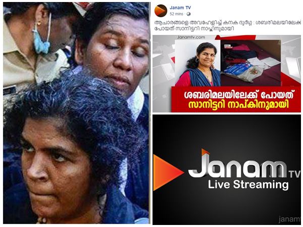 ശബരിമല ദർശനം നടത്തിയ കനകദുർഗയുടെ ബാഗിൽ സാനിറ്ററി നാപ്കിനെന്ന് ജനം ടിവി