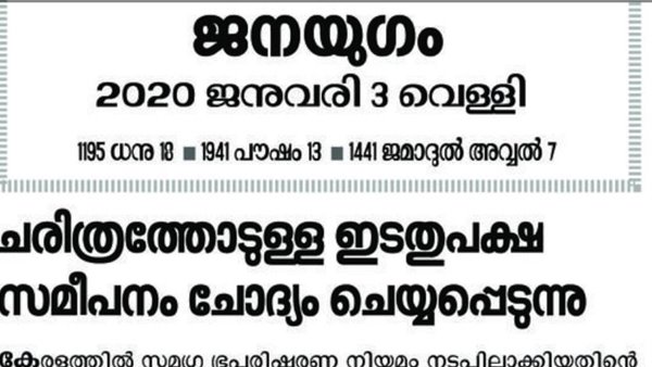 ചരിത്രത്തോടു സത്യസന്ധത തെല്ലും പുലര്ത്താതെ, ചരിത്രത്തെ വളച്ചൊടിക്കുകയും ദുര്വ്യാഖ്യാനം ചെയ്തും ദേശീയ രാഷ്ട്രീയത്തെ കലുഷിതമാക്കി മാറ്റുന്ന ഘട്ടത്തില് സമീപകാല കേരളത്തിന്റെ ചരിത്ര യാഥാര്ത്ഥ്യങ്ങള് അംഗീകരിക്കാന് വിസമ്മതിക്കുന്ന നിലപാട് ഇടതുപക്ഷ രാഷ്ട്രീയത്തിന് ഭൂഷണമല്ല. ചരിത്രം ഐതിഹ്യങ്ങളൊ കെട്ടുകഥകളൊ അല്ല. അവ വസ്തുനിഷ്ടമായ തെളിവുകളുടെ അടിസ്ഥാനത്തിലാണ് രേഖപ്പെടുത്തപ്പെടുകയെന്നും ജനയുഗത്തിന്റഎ മുഖപ്രസംഗത്തിൽ വ്യക്തമാക്കുന്നു.