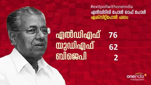 എന്ഡിടിവിയുടെ എക്സിറ്റ് പോളില് ഇടതുപക്ഷത്തിന് 76 സീറ്റ് കിട്ടുമെന്നാണ്. യുഡിഎഫിന് 62 സീറ്റും. എന്ഡിഎയ്ക്ക് 2 സീറ്റും. സിഎന്എന് ന്യൂസ് 18 എക്സിറ്റ് പോള് പ്രകാരം ഇടതുപക്ഷത്തിന് 72 മുതല് 80 സീറ്റ് വരെ കിട്ടും. യുഡിഎഫിന് 58 മുതല് 64 വരെ സീറ്റുകള് കിട്ടാനാണ് സാധ്യത. ബിജെപി അഞ്ച് വരെ സീറ്റുകളും.