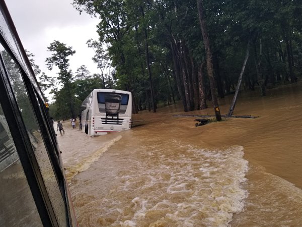 Kodagu: Landslide at Jodupala road has disrupted traffic movement. The road connects Madikeri and Mangaluru. (Earlier visuals) #Karnataka pic.twitter.com/bCHypxPyEi