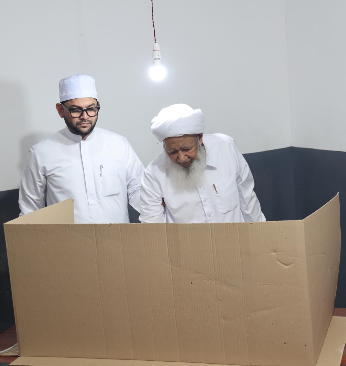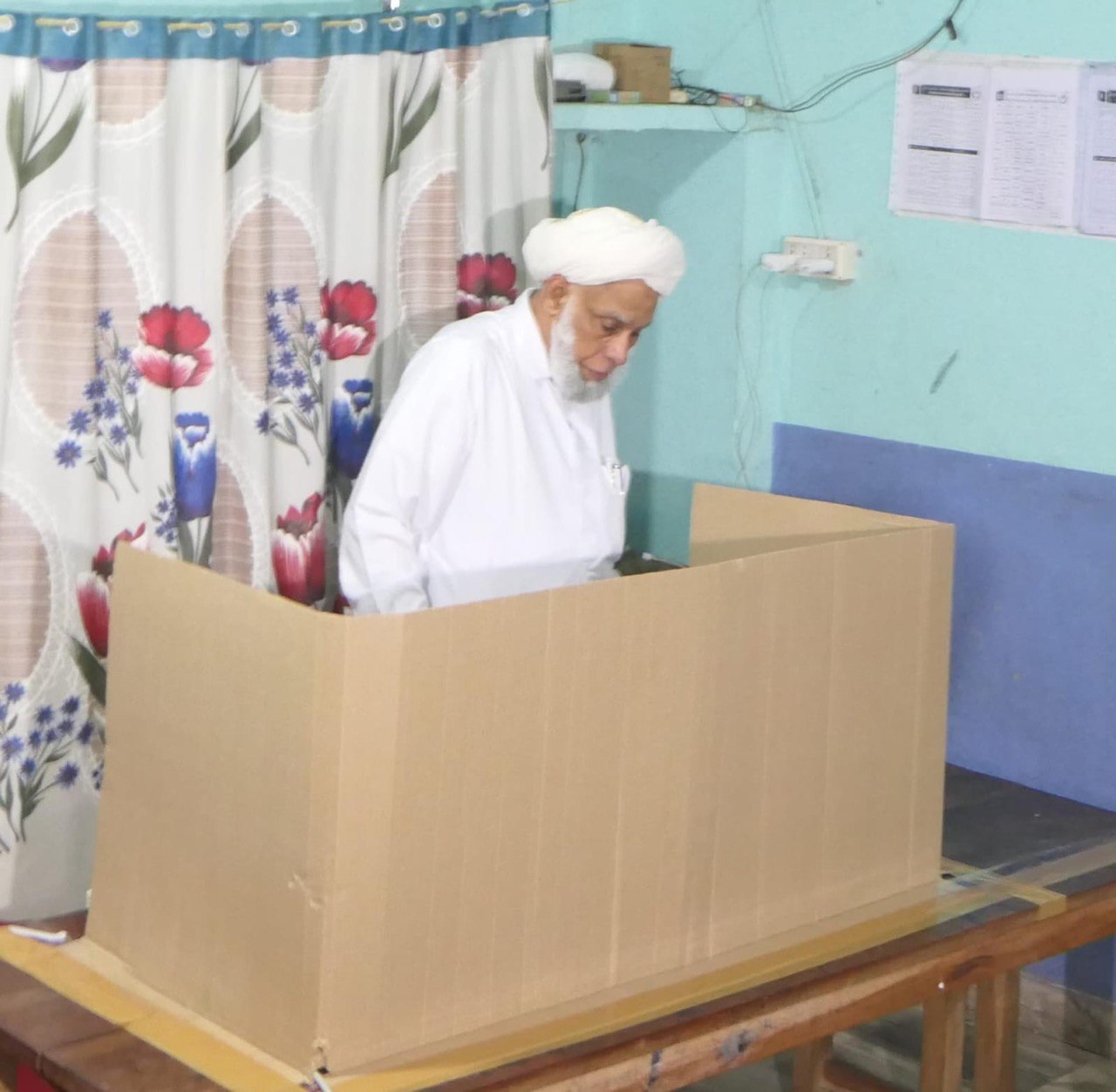 കാന്തപുരം എപി അബൂബക്കര് മുസ്ലിയാര് പൂനൂര് ജിഎംയുപി സ്കൂള് ബൂത്തില് വോട്ട് രേഖപ്പെടുത്തുന്നു