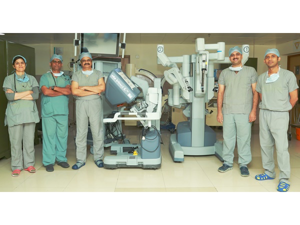 റോബോട്ടിക് കിഡ്നി ട്രാന്സ്പ്ലാന്റ് ടീമംഗങ്ങളായ ഡോ പ്രീത ചന്ദ്രന്, ഡോ കെ കിഷോര്, ഡോ. രവികുമാര് കരുണാകരന്, ഡോ. അഭയ് ആനന്ദ്, ഡോ സൂര്ദാസ് എന്നിവര് ഡാവിഞ്ചി റോബോട്ടിക് സര്ജിക്കല് സിസ്റ്റത്തിനൊപ്പം