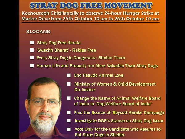 തെരുവ് നായ്ക്കളെ 'ഉന്മൂലനം ചെയ്യാന്' ചിറ്റിലപ്പിള്ളിയുടെ നിരാഹാരം- ഇതാ പത്ത് മുദ്രാവാക്യങ്ങള്