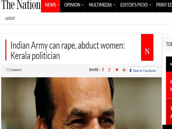 സൈന്യം സ്ത്രീകളെ ബാലാത്സംഗം ചെയ്യുമെന്ന കോടിയേരിയുടെ പ്രസ്താവനയെ ഉദ്ധരിച്ചാണ് ദ നേഷൻ, ദി എക്സ്പ്രസ് ട്രൈബ്യൂൺ എന്നീ പത്രങ്ങൾ രംഗത്ത് വന്നിരിക്കുന്നത്.