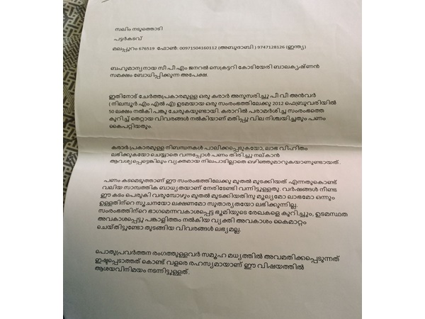 കോടിയേരി ഇടപെട്ടിട്ടും അന്വര് എംഎല്എ തട്ടിയെടുത്ത ഇടത് സഹയാത്രികന്റെ പണം തിരിച്ചുമേടിക്കാന് സാധിച്ചില്ല