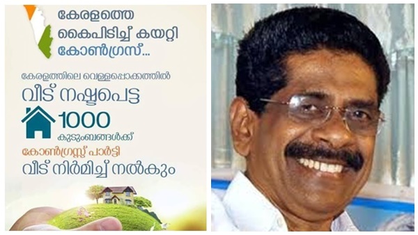 പ്രളയത്തില് ദുരിതമനുഭവിക്കുന്നവരില് സര്ക്കാര് പദ്ധതിക്ക് പുറത്ത് നില്ക്കുന്നവര്ക്ക്. പ്രഖ്യാപനം നടന്ന് പത്തുമാസത്തിലേറെ ഒരു മണ്ഡലം കമ്മിറ്റി അഞ്ച് ലക്ഷം രൂപ മുടക്കി ഒരുവീടുവിതം നിർമിച്ചുനൽകുന്ന പദ്ധതിയാണ് മുൻ കെപിസിസി പ്രസിഡന്റ് എം എം ഹസ്സൻ 2018 ആഗസ്ത് 21ന് പ്രഖ്യാപിച്ചത്. കഴിഞ്ഞെങ്കിലും നാമമാത്രമായ വീടുകള് മാത്രമാണ് നിര്മ്മിച്ച് നല്കിയതെന്ന ആരോപണം നേരത്തെ തന്നെ ശക്തമായിരുന്നു. പദ്ധതിയില്പ്പെട്ട 42 വീടുകളുടെ നിര്മ്മാണം പൂര്ത്തിയായെന്നും 278 വീടുകളുടെ നിര്മ്മാണം വിവിധ ഘട്ടങ്ങളിലാണെന്നും എംഎം ഹസന് പിന്നീട് അറിയിച്ചിരുന്നു.
