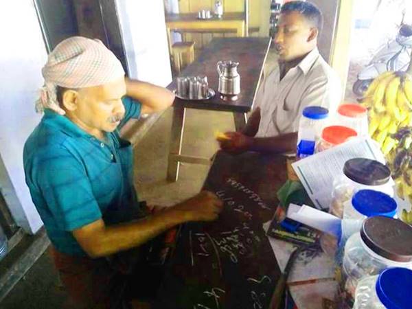 ചോക്ക്കൊണ്ട് ചായ കടയിലെ കണക്കെഴുതുന്ന കൃഷ്ണന്കുട്ടിയേട്ടന്.