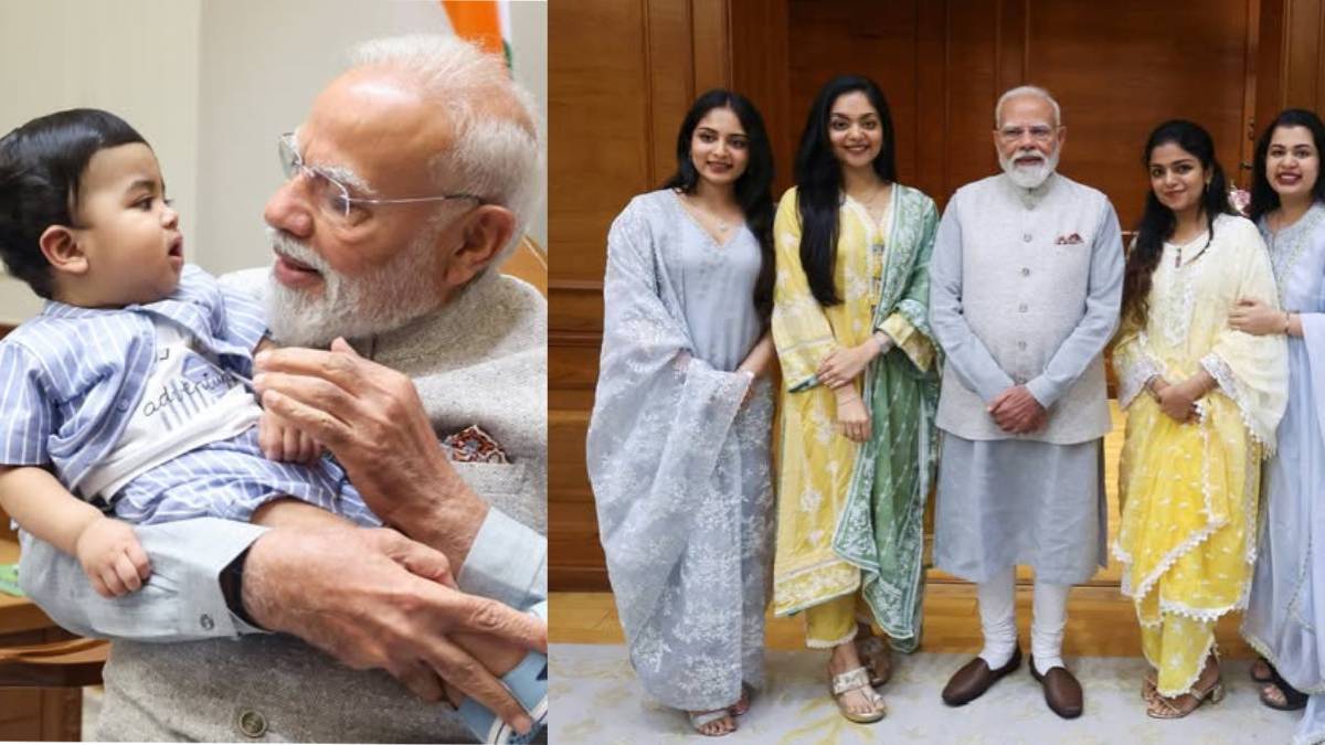 ഏറെനേരം കുടുംബാംഗങ്ങളുമായി പ്രധാനമന്ത്രി ചെലവഴിച്ചു. അതിനിടെ ദിയയുടെയും അശ്വിന്റെയും മകനായ എട്ടു മാസം പ്രായമുള്ള ഓമിയെയും പ്രധാനമന്ത്രി താലോലിക്കുകയും കൊഞ്ചിക്കുകയും ചെയ്തു. ഇതിന്റെ ചിത്രങ്ങളും കൃഷ്ണകുമാര് പങ്കുവെച്ചിട്ടുണ്ട്.