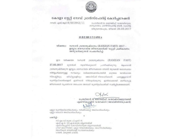 കെഎസ്ആർടിസിയുടെ നോട്ടീസിലും സംഘികളുടെ വർഗീയ കണ്ണ്; ജോലി സമയം ക്രമീകരിച്ചാലും പ്രശ്നം!!!