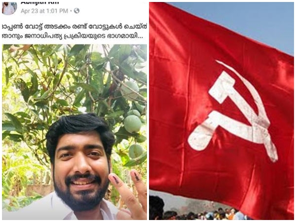 'ഓപ്പണ് വോട്ട് അടക്കം രണ്ട് വോട്ടുകള് ചെയ്ത് ഞാനും ജനാധിപത്യ പ്രക്രിയയുടെ ഭാഗമായി' എന്ന കുറിപ്പോടെയാണ് വോട്ടെടുപ്പ് ദിവസം അഭിജിത്ത് ഫോട്ടോ സഹിതം ഫേസ്ബുക്കില് പോസ്റ്റിട്ടത്. ചിത്രത്തില് അഭിജിത്തിന്റെ ഇടതുകയ്യിലെ ചൂണ്ടുവിരലിലും നടുവിരലിലും മഷി രേഖപ്പെടുത്തിയിട്ടുമുണ്ട്.