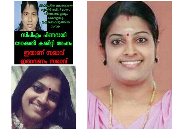 എന്നാല് അനുഭാവിപോലുമല്ലാത്ത സൗമ്യയെ പാര്ട്ടി അംഗമാക്കി അവതരിപ്പിച്ച് കലാപം നടത്താനുള്ള ശ്രമമാണ് ലസിത നടത്തുന്നതെന്നും ലസിതയ്ക്കെതിരെ നിയമനടപടി വേണമെന്നും ആവശ്യപ്പെട്ട് പിണറായി ലോക്കല് കമ്മിറ്റി സെക്രട്ടറി കക്കോത്ത് രാജന് മുഖ്യമന്ത്രിക്കും ഡിജിപിക്കും പരാതി നല്കി.പാര്ട്ടിയെ അപകീര്ത്തിപ്പെടുത്താന് ചെയ്തിട്ടുള്ള ലസിത പാലയ്ക്കലിനെതിരെ ഐടി ആക്ട് , ഇന്ത്യന് ശിക്ഷാ നിയമം, കേരള പോലീസ് ആക്റ്റ് എന്നിവ പ്രകാരം കേസെടുക്കണമെന്നും പരാതിയില് ആവശ്യപ്പെട്ടിരുന്നു.