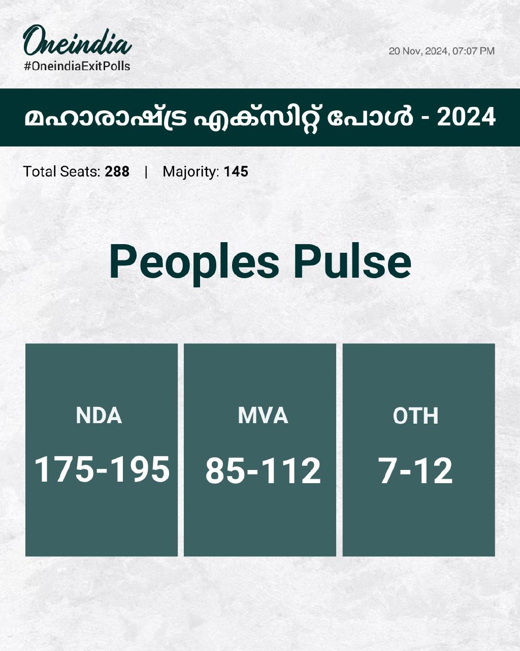 ഭൂരിപക്ഷം എക്സിറ്റ് പോളുകളും മഹാരാഷ്ട്രയിൽ വിജയം പ്രവചിക്കുന്നത് മഹായുതിക്കാണ്