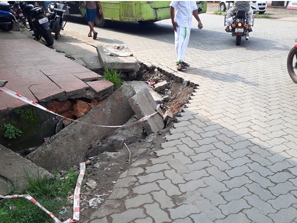 ഇതേ തുടര്ന്ന് ഈ മേഖലയില് അപകടങ്ങള് പതിവായിരിക്കുകണന്ന്. മാസങ്ങള്ക്കു മുമ്പ് കുടിവെള്ളപൈപ്പ് പൊട്ടിയതിനെ തുടര്ന്ന് ഈ ഭാഗത്തെ റോഡ് വെട്ടിപൊളിച്ച് രൂപപ്പെട്ട കുഴികള് അധികൃതര് റോഡില് കട്ടവിരിച്ച് സഞ്ചാര യോഗ്യമാക്കിയിരുന്നു. ഈ ഭാഗത്തെ റോഡിലെ സ്ലാബുകളാണ് വാഹനങ്ങള് കയറി ഇടിഞ്ഞ് പൊളിഞ്ഞ് കാനയിലേക്ക് വീണ് കിടക്കുന്നത്. സ്ലാബ് പൊളിഞ്ഞതിനോടൊപ്പം റോഡില് വിരിച്ച കട്ടകളുംപൊളിഞ്ഞ് കാനയിലേക്ക് വീണിരിക്കുകയാണ്.