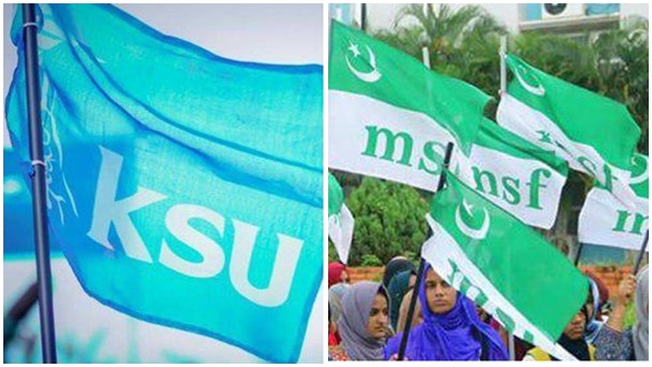 പച്ചക്കൊടിയും തേങ്ങാപ്പൂളും പുല്ല്, ചെന്നിത്തല സംഘിത്തല; പോരടിച്ച് എംഎസ്എഫും കെ എസ് യുവും