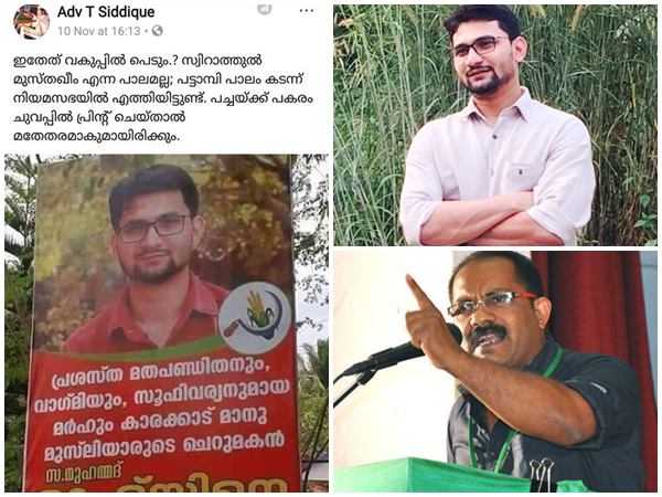 പ്രശസ്ത മതപണ്ഡിതനും വാഗ്മിയും സൂഫിവര്യനുമായ മര്ഹും കാരക്കാട് മാനു മുസ്ലിയാരുടെ ചെറുമകന് സ. മുഹമ്മദ് മുഹ്സിനെ വിജയിപ്പിക്കുക എന്നാണ് ഫ്ളക്സ് ബോര്ഡില് എഴുതിരിയിരിക്കുന്നത്. കോണ്ഗ്രസ് നേതാവ് ടി സിദ്ദിഖ് അടക്കമുളളവര് ഇതും മതത്തിന്റെ പേരിലുളള വോട്ട് പിടുത്തമാണ് എന്ന് ആരോപിക്കുന്നു. ആരോപണങ്ങള്ക്ക് ചുട്ടമറുപടിയാണ് മുഹ്സിന് നല്കിയിരിക്കുന്നത്. ഫേസ്ബുക്ക് പോസ്റ്റ് വായിക്കാം: