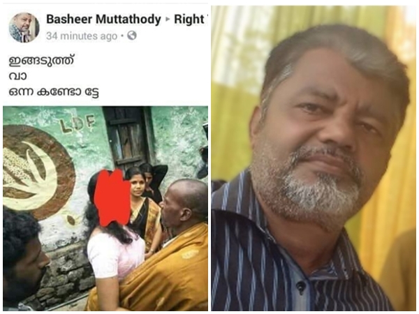 വീട്ടില് എത്തിയ അധ്യാപികയോട് എന്റെ മകനെ കൊന്നവരെ ഉടന് പിടികൂടണം എന്ന് പറഞ്ഞു വികാരഭരിതനാകുന്ന പിതാവ് മനോഹരന്റെ ചിത്രങ്ങള് വൈറലായിരുന്നു. ഈ ചിത്രത്തെയാണ് മുസ്ലീം ലീഗ് പ്രവര്ത്തകനായ ബഷീര് മുട്ടത്തൊടി എന്നയാള് മോശം കമന്റോടെ ഫേസ്ബുക്കില് ഷെയര് ചെയ്തത്.