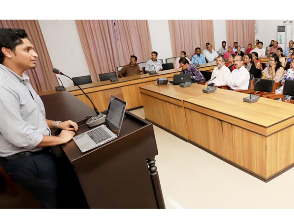 കാലിക്കറ്റ് സര്വകലാശാലയില് നിപാ വൈറസ് പ്രതിരോധ പരിശീലന പരിപാടിയില് ഡോ.മര്സൂഖ് അസ്ലം ക്ലാസ് നയിക്കുന്നു