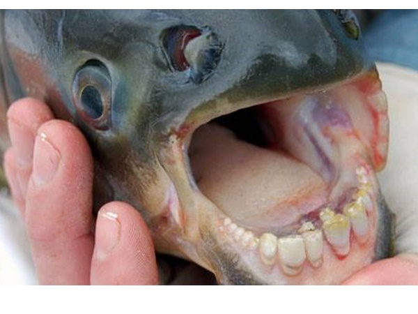 വായിൽ നിറയെ കൂർത്ത പല്ലുകളാണ് പിരാനയ്ക്കുള്ളത്. വല വീശി പിടിക്കാൻ ശ്രമിച്ചാലും കൂർത്ത പല്ലുകൾ ഉപയോഗിച്ച് ഇവ വല കീറി മുറിച്ച് രക്ഷപെടും. ഇതിന്റെ കൂർത്ത പല്ലുകൾ ഉപയോഗിച്ചാണ് ഇര പിടിക്കുന്നതും. വായിൽ നിറയെ പരന്ന പല്ലുകളാണ് പാക്കുവിന്റെ പ്രത്യേകത. മനുഷ്യന്റെ പല്ലുകളോട് സാമ്യതയുള്ളതാണിവ. പിരാനയും പാക്കുവും റെഡ് ബെല്ലി ഗണത്തിൽ പെട്ട മത്സ്യങ്ങളാണ്.