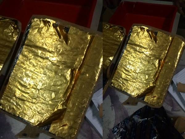 കരിപ്പൂരില് പിടികൂടിയ തകിടുകളില് രൂപത്തിലുള്ള സ്വര്ണം.