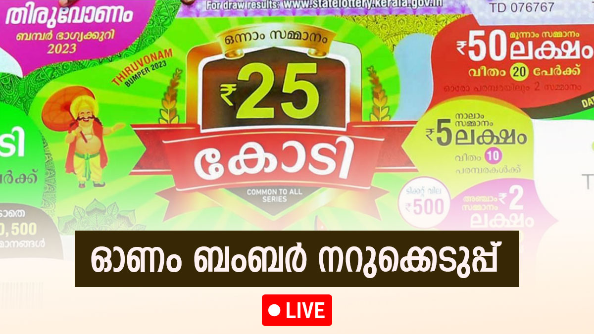 തിരുവനന്തപുരം: തിരുവോണം ബംബർ നറുക്കെടുപ്പ് ഫലം അറിയാൻ ഇനി അൽപസമയം മാത്രമാണ് ഉളളത്. ടിക്കറ്റ് എടുത്തവരും എടുക്കാത്തവരുമെല്ലാം ആകാംഷയോടെ കാത്തിരിക്കുകയാണ് ആ ഭാഗ്യം ആർക്കാണ് എന്നറിയാൻ. ഏറ്റവും വലിയ സമ്മാനത്തുകയാണ് എന്നതാണ് ഓണം ബംബറിനെ ആകർഷകമാക്കുന്നത്. ഓണം ബംബർ 2023 നറുക്കെടുപ്പ് ഫലം തത്സമയം അറിയാം വൺ ഇന്ത്യ മലയാളത്തിലൂടെ..