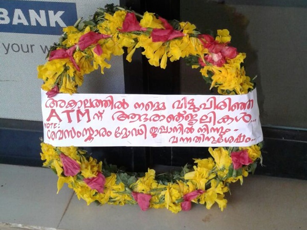 എടിഎമ്മിന് മുന്നില് റീത്ത് സമര്പ്പണവും നാട്ടുകാര് ആരംഭിച്ചു!!!