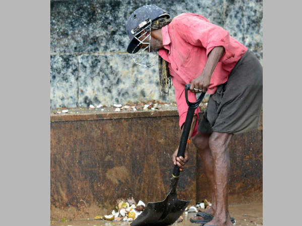 ക്രിക്കറ്റ് ഹെല്മറ്റ് ധരിച്ചാണ് ഇദ്ദേഹം സന്നിധാനത്തെ ശുചീകരണ ജോലികളില് ഏര്പ്പെട്ടിരിക്കുന്നത്. പരിഹസിക്കേണ്ട... ഏത് നിമിഷവും തലയിലേക്ക് നെയ്ത്തേങ്ങയുടെ കഷ്ണങ്ങള് വീണേക്കാമെന്ന ഭയത്തില് സ്വയം എടുത്ത മുന്കരുതലാകാനാണ് സാധ്യത.
