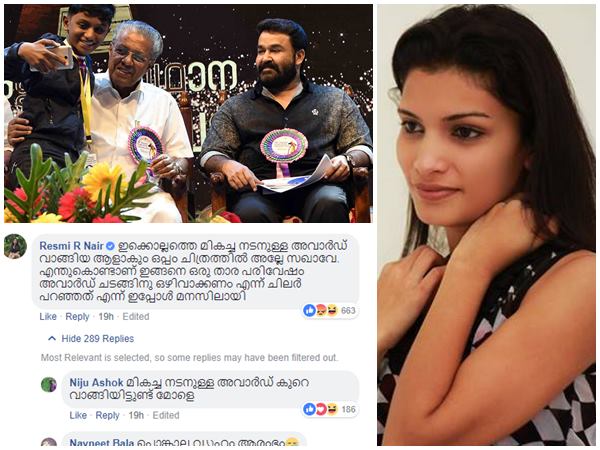സര്ക്കാര് ചെലവില് ഫാന്സിനെ കുളിരണിയിക്കുന്ന മാസ് പ്രസംഗം നടത്തി മോഹന്ലാല് മടങ്ങിപ്പോവുകയും ചെയ്തു. പിന്നാലെ മുഖ്യമന്ത്രി പിണറായി വിജയന്റെ പേജില് ഫോട്ടോയും പോസ്റ്റും വന്നു. അതിലാകട്ടെ അവാര്ഡ് ജേതാക്കളുടെ പൊടി പോലുമില്ല കണ്ട് പിടിക്കാന്. അതിനിടെ മുഖ്യമന്ത്രിയുടെ പോസ്റ്റിന് താഴെ വിമര്ശനം ഉന്നയിച്ച രശ്മി ആര് നായരുടെ വില ചോദിക്കാന് തിരക്ക് കൂട്ടുകയാണ് ഫാന്സ് വെട്ടുകിളികൾ.