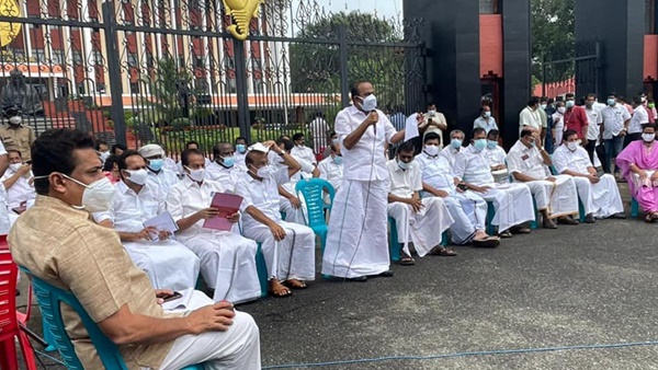 പികെ ബഷീര് മുഖ്യമന്ത്രി, ഷംസുദ്ദീന് സ്പീക്കര്: സഭയ്ക്ക് മുന്നില് പ്രതീകാത്മ സഭയുമായി പ്രതിപക്ഷം