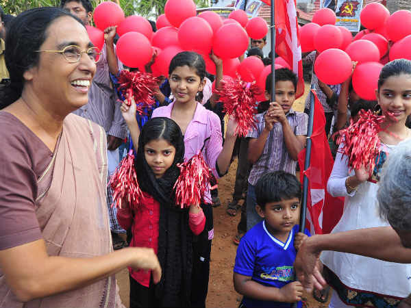 സിപിഎം സ്ഥാനാര്ത്ഥി പികെ സൈനബക്ക് നല്കിയ സ്വീകരണത്തില് ചുവന്ന ബലണുകളുമായി കുട്ടികള്