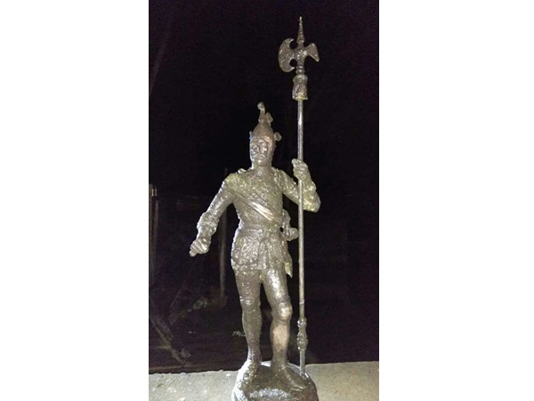 കഴിഞ്ഞ ദിവസം നാട്ടുകാര് വിവരം അറിയച്ചതിനെ തുടര്ന്നാണ് ശില്പ്പം പോലീസ് കസ്റ്റഡിയിലെടുത്ത് സ്റ്റേഷനിലേക്ക് കൊണ്ടു വന്നത്. ആയുധം ഏന്തി നില്ക്കുന്ന ഭടന്റെ പൂര്ണകായ ശില്പമാണ് ഇത്.