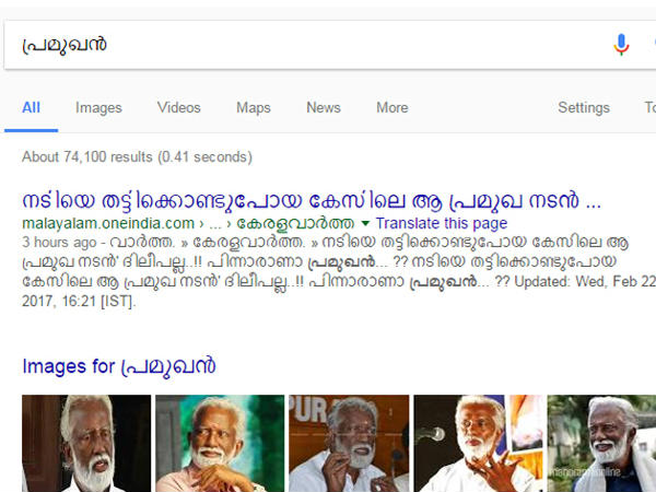 പ്രമുഖന് എന്ന് ഗൂഗിളില് തിരഞ്ഞവര് സെര്ച്ച് റിസള്ട്ട് കണ്ട് ഞെട്ടിപ്പോയി. പ്രമുഖന് എന്ന് മലയാളത്തില് ടൈപ്പ് ചെയ്താല് ഗൂഗിള് കാണിക്കുന്നത് കേരളത്തിലെ ഒരു രാഷ്ട്രീയ നേതാവിന്റെ ചിത്രമാണ്. ബിജെപി സംസ്ഥാന അധ്യക്ഷന് കുമ്മനം രാജശേഖരന്റെ ചിത്രമാണ് പ്രമുഖന് എന്ന് ഗൂഗിളില് തിരഞ്ഞാല് ലഭിക്കുന്നത്.