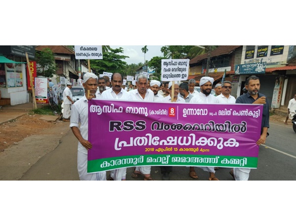 അസർ നിസ്ക്കാരാനന്തരം ടൗൺ സുന്നി ജുമാ മസ്ജിദ് പരിസരത്ത് നിന്നാരംഭിച്ച പ്രകടനത്തിൽ നിരവധി പേർ പങ്കെടുത്തു. മത രാഷ്ടീയ ജാതി വൈരത്തിന്റെ പേരിൽ ഇനി യൊരു കുഞ്ഞിനെയും കുരുതി കൊടുക്കേണ്ടി വരരുതെന്നാവശ്യപ്പെട്ട് നടത്തിയ മാർച്ചിൽ പ്രതിഷേധമിരമ്പി. സോൺ പ്രസിഡണ്ട് സയ്യിദ് അബ്ദുല്ല കോയ സ ഖാഫി, സയ്യിദ് ഹബീബ് തങ്ങൾ സെ ക്രട്ടറി ഷംസു പെരുവയൽ, പി.കെ സ്വാലാഹുദ്ധീൻ മുസ്ലിയാർ, മൂസ സഖാഫി പെരുവയൽ, നേതൃത്വം നൽകി. ആസിഫാ ബാനുവിനെ മൃഗീയമായി കൊലപ്പെടുത്തിയ RSS നരാദമൻമാർക്കെതിരെ കാരന്തൂർ മഹല്ല് ജമാ അത്തിന്റെ താക്കീത്. മഹല്ല് പ്രസിഡണ്ട്