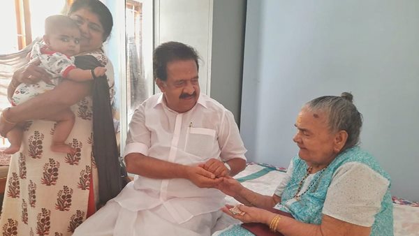 കൊച്ചുമകനുമൊത്ത് അമ്മയെ കാണാൻ, വിഷു ഓർമ്മകൾ പങ്കുവെച്ച് രമേശ് ചെന്നിത്തല
