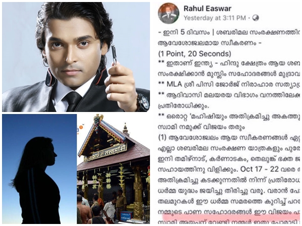 സ്വാമി അയ്യപ്പന് വേണ്ടി നമ്മൾ ഇതു പോരാടി ജയിക്കും. സ്വാമി ശരണം എന്നായിരുന്നു രാഹുലിന്റെ പോസ്റ്റ്.