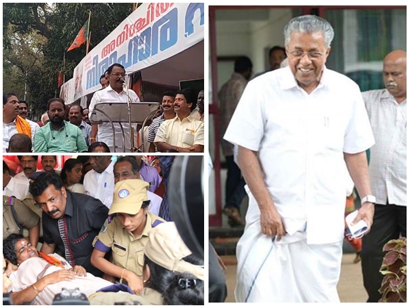 എന്നാല് സര്ക്കാര് ബിജെപിക്ക് വഴങ്ങാതായതോടെ രാധാകൃഷ്ണന് സമരം അവസാനിപ്പിച്ചു. പിന്നാലെ ദേശീയ കൗണ്സില് അംഗം സികെ പത്മനാഭന് നിരാഹാരമിരുന്നു.ശോഭാ സുരേന്ദ്രനായിരുന്നു മൂന്നാമത് സമരമിരുന്നത്. എന്നാല് നിരാഹാരത്തിനിടയില് ശോഭയുടെ 'സ്റ്റീല്' ഗ്ലാസിലെ ' പാനീയം' കുടി വിവാദമായതോടെ ശോഭയും സമരം അവസാനിപ്പിച്ചു.