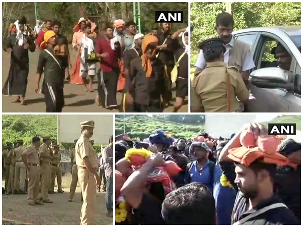 #Kerala: Devotees begin the trek from Nilakkal base camp to #SabarimalaTemple. The temple will open today evening and will be closed after the 'Athazha puja' tomorrow evening. pic.twitter.com/nK47UGMang