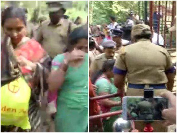 പമ്പയിൽ നിന്നും 50 മീറ്റർ മുന്നോട്ട് പോയപ്പോൾ തന്നെ അയ്യപ്പഭക്തർ ഇവരെ കാണുകയായിരുന്നു. ഇതോടെ പ്രതിഷേധം ആരംഭിച്ചു. റോഡിൽ കിടന്ന പ്രതിഷേധം ആരംഭിച്ചപ്പോൾ പോലീസ് ഇടപെടുകയായിരുന്നു. ഇവർക്ക് തെലുങ്ക് അല്ലാതെ മറ്റു ഭാഷകൾ വശമില്ലായിരുന്നു. ഇതോടെ തെലുങ്ക് അറിയാവുന്ന പോലീസ് ഉദ്യോഗസ്ഥൻ ഇടപെട്ട് ഇവരുടെ പ്രായം ചോദിച്ച് മനസിലാക്കി. പിന്നീട് ഇവരെ ഗാർഡ് റൂമിലേക്ക് മാറ്റി.