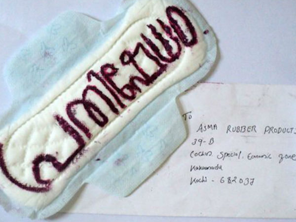 സാനിറ്ററി പാഡ് അയച്ച് പ്രതിഷേധം, എഫ്ബിയില് ഉപയോഗിച്ച പാഡുകളും