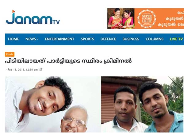 ഷുഹൈബ് വധക്കേസിൽ പിടിയിലായത് സിപിഎമ്മിന്റെ സ്ഥിരം ക്രിമിനൽ; നേതാക്കളുമായി അടുത്ത ബന്ധമെന്ന് 'ജനം'