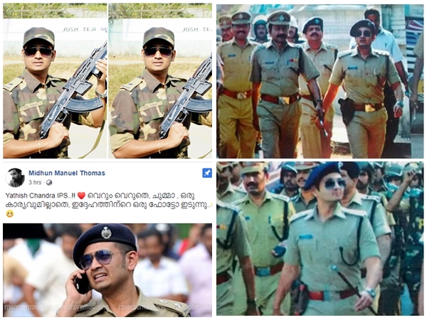 ‘യതീഷ് ചന്ദ്ര എസ്പി. വെറും വെറുതെ, ചുമ്മാ, ഒരു കാര്യവുമില്ലാതെ, ഇദ്ദേഹത്തിന്റെ ഒരു ഫോട്ടോ ഇടുന്നു എന്നായിരുന്നു സംവിധായകന് മിഥുന് മാനുവല് കുറിച്ചത്.